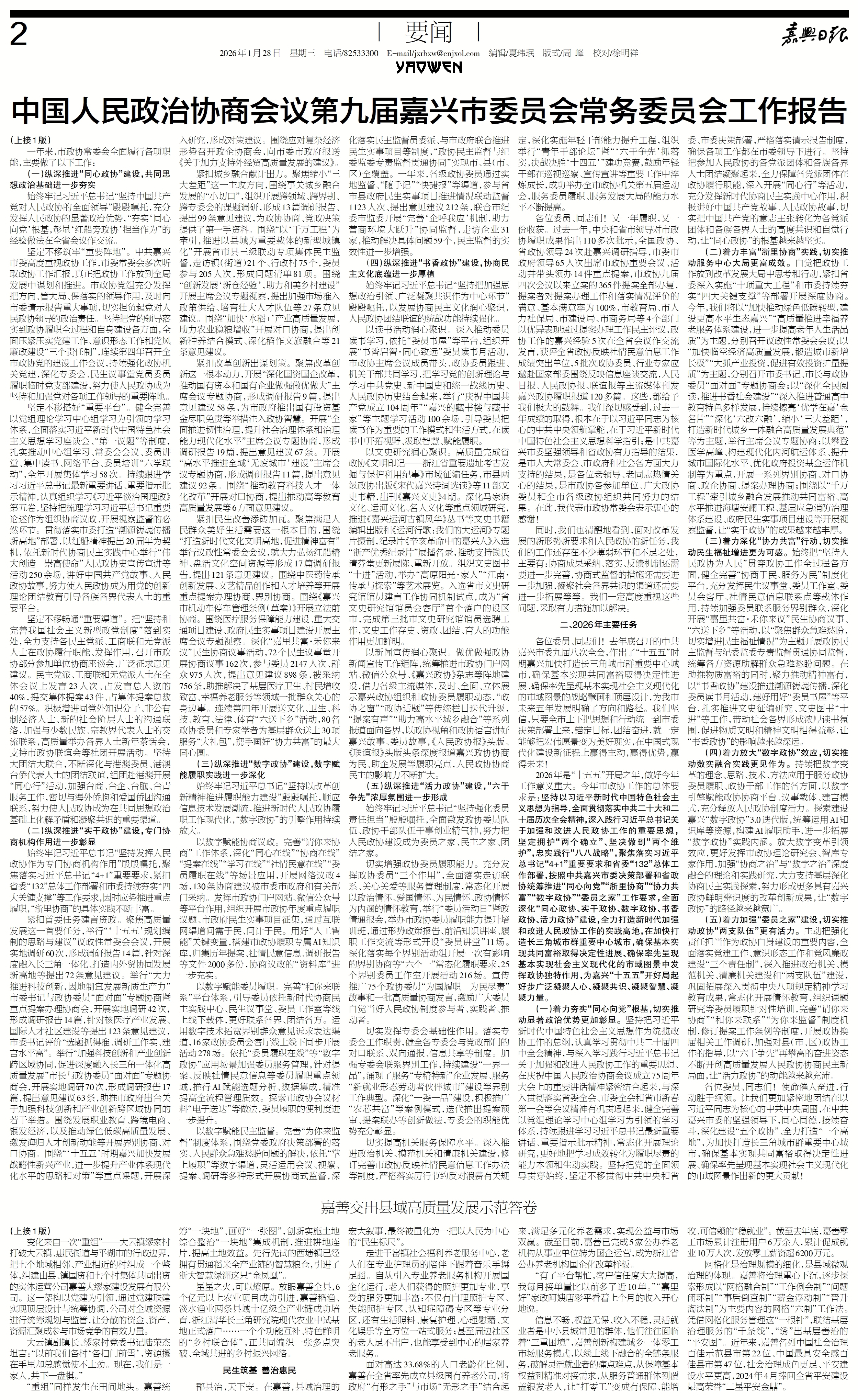 中国人民政治协商会议第九届嘉兴市委员会常务委员会工作报告