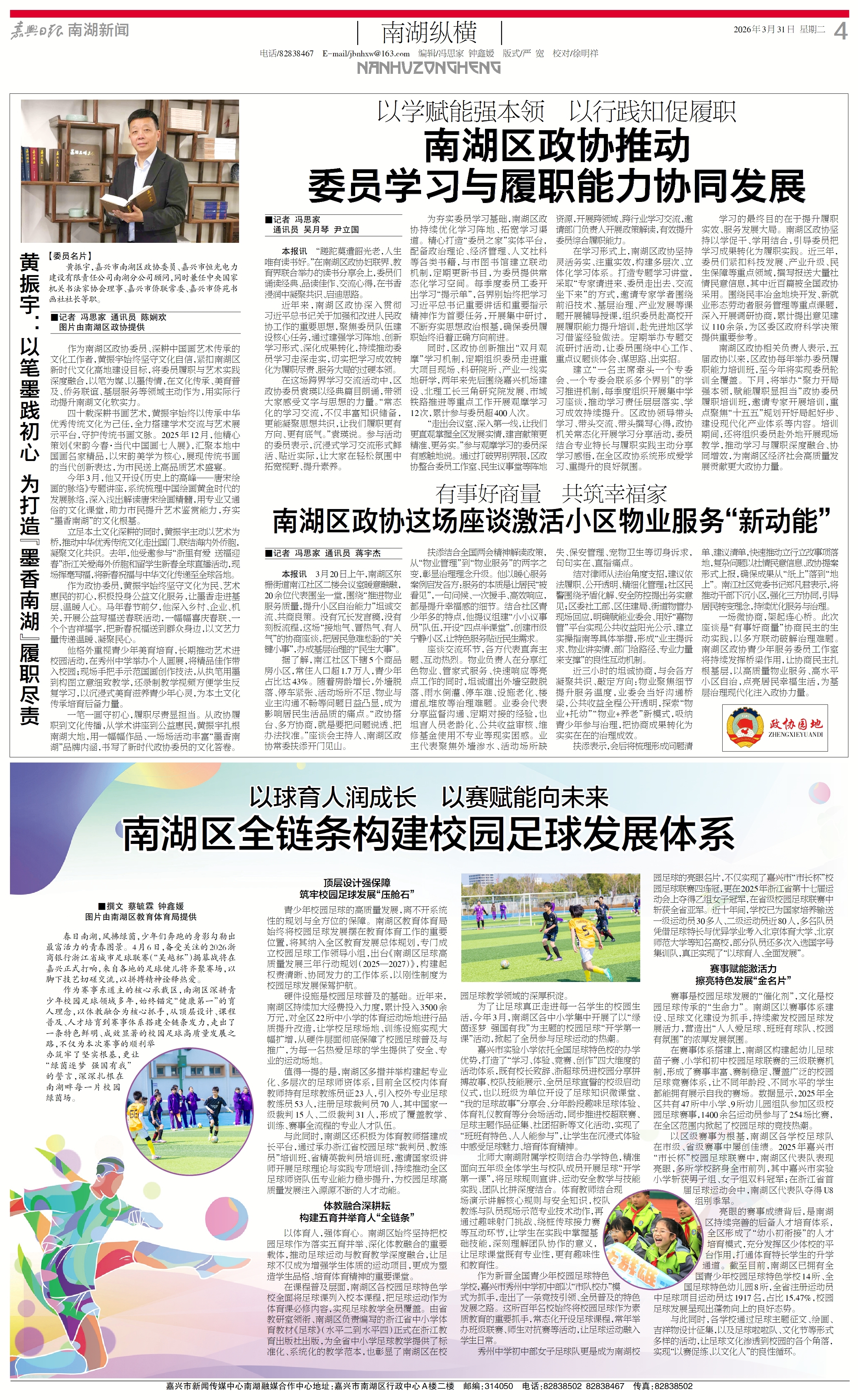 黄振宇:以笔墨践初心 为打造“墨香南湖”履职尽责